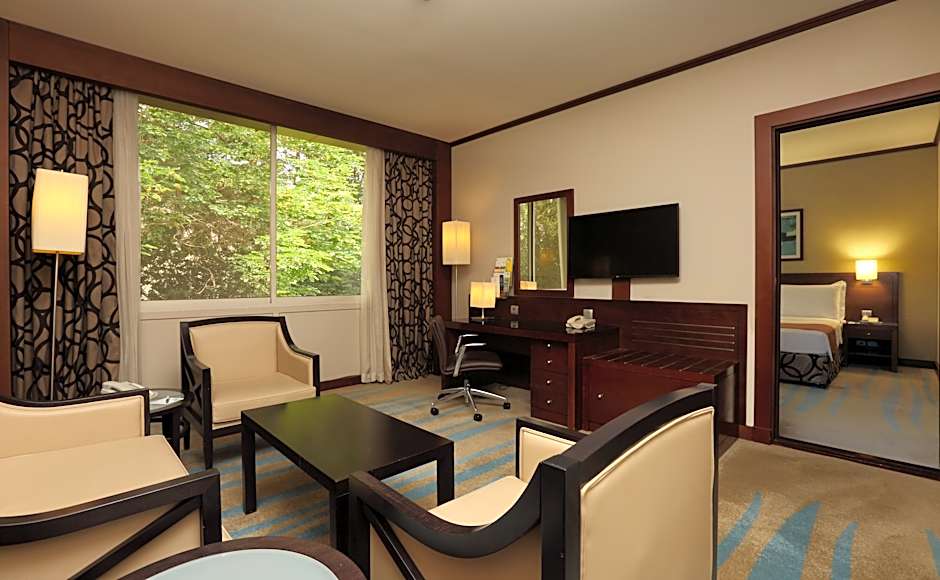 Air-conditioned suite featuring views of the hotel's grounds and free morning newspaper. It features a sitting area with a sofa and satellite TV with free internet access. The suite comes equipped with a mini-bar and bathroom with free toiletries.